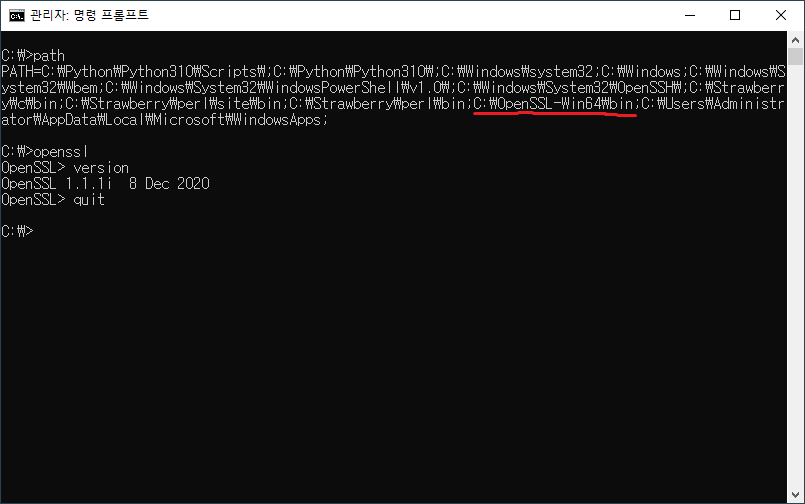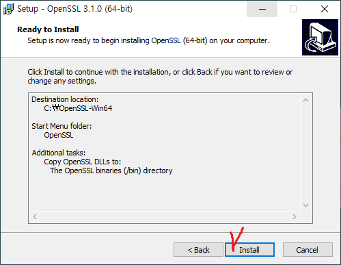 1. OpenSSL 설치 예)Win64OpenSSL-3_1_0.msi 실행