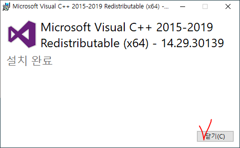 MICROSOFT VISUAL C++ 2015 - 2022 런타임을 설치해도 된다.