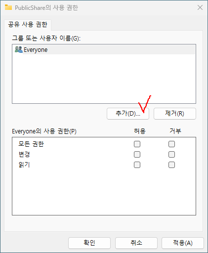 5. 그룹 또는 사용자 이름(G)에서 추가를 클릭