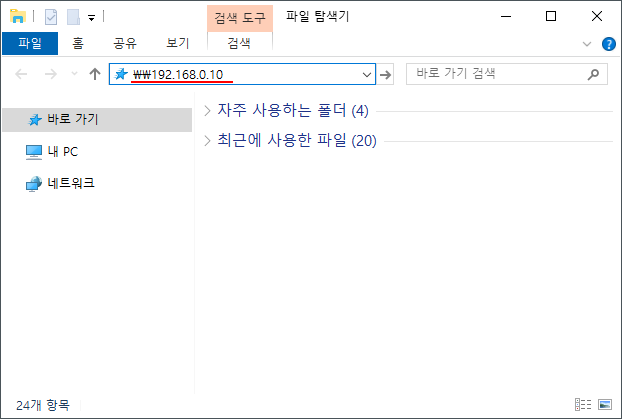 \\192.168.0.10 또는 file://192.168.0.10 을 입력한다.