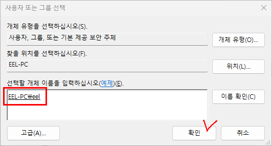 8. 컴퓨터이름\이용자를 입력하고 확인