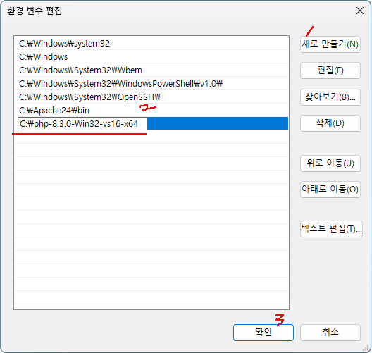 4. PHP 폴더를 환경변수에 PATH로 등록한다.