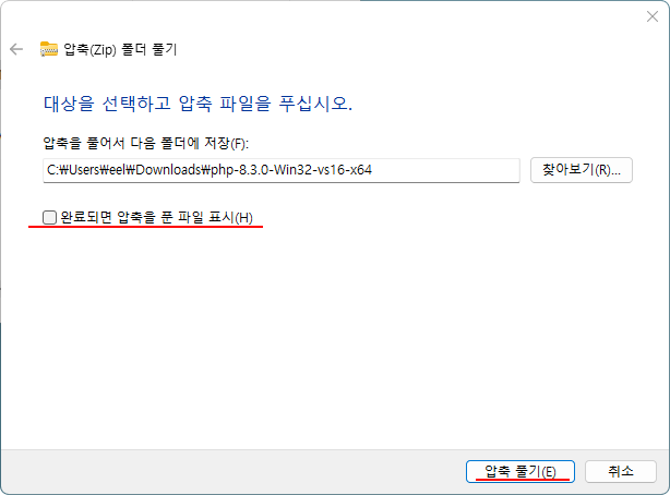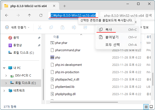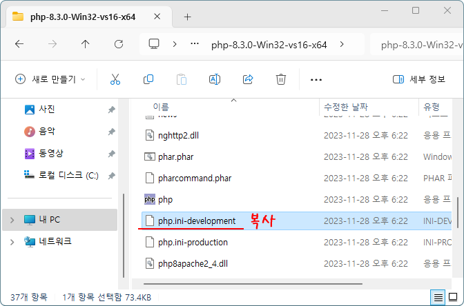 php-8.3.0-Win32-vs16-x64.zip을 예로 들었다.