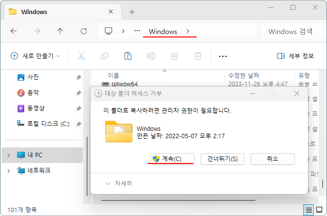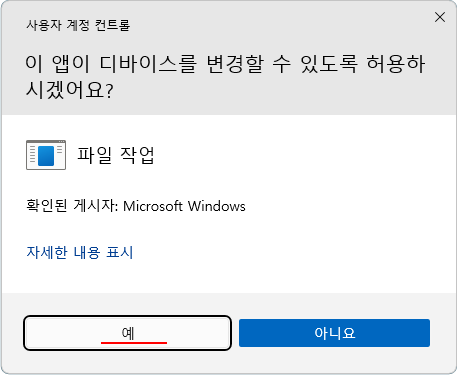 9. 사용자 계정 컨트롤 창이 뜨면 이를 허용한다.