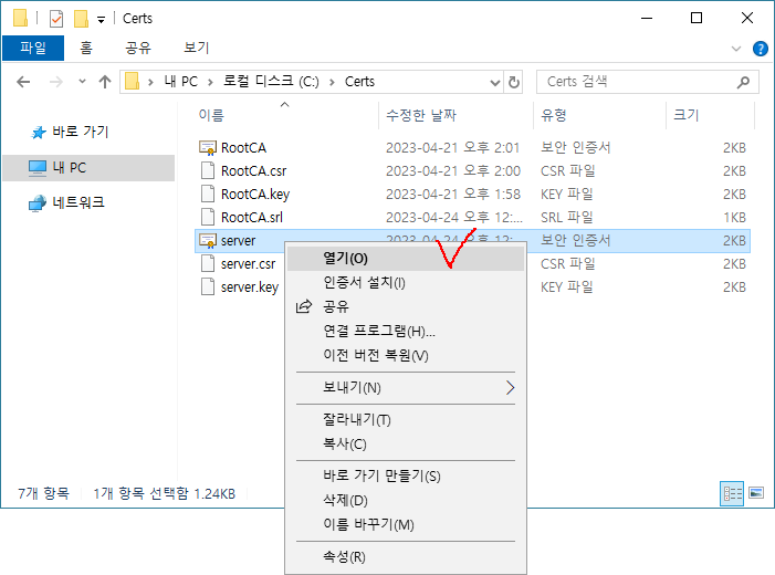 사설용 루트인증서를 먼저 만듦(루트인증서 만들기)