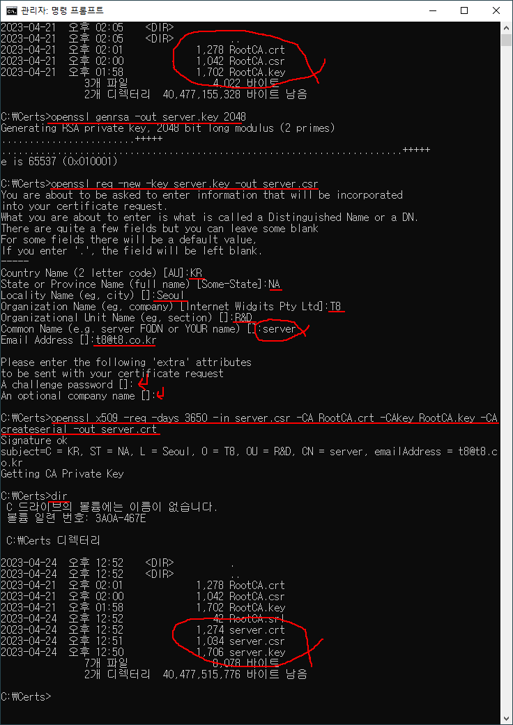 1. 명령어 *server 이름은 예, Common Name으로 사용