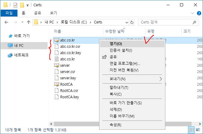 사설용 루트인증서를 먼저 만듦(루트인증서 만들기)