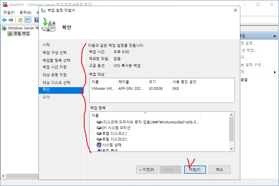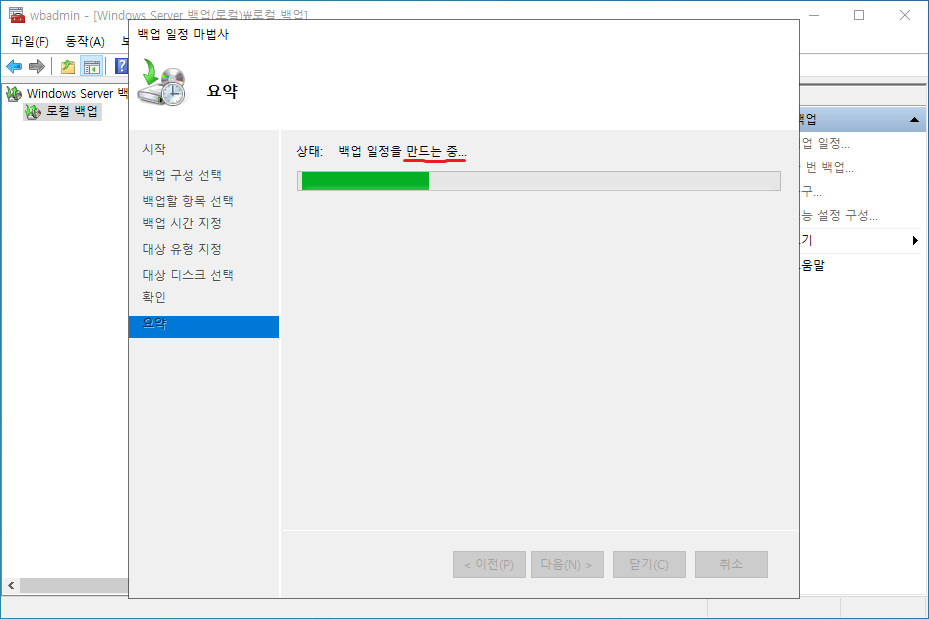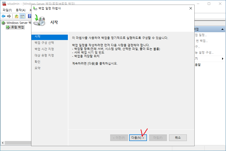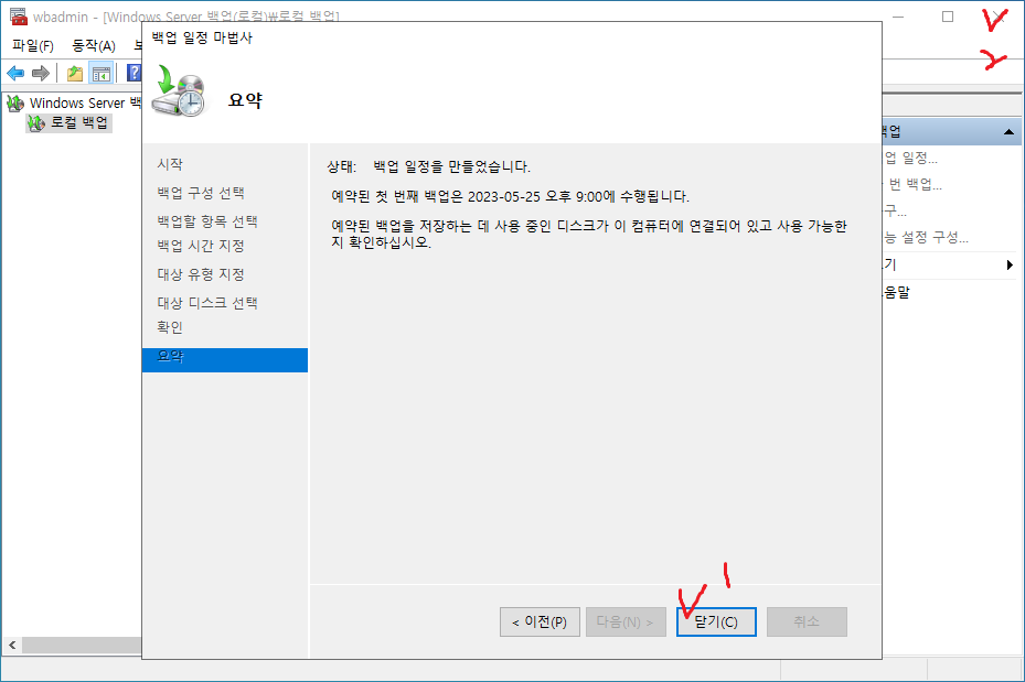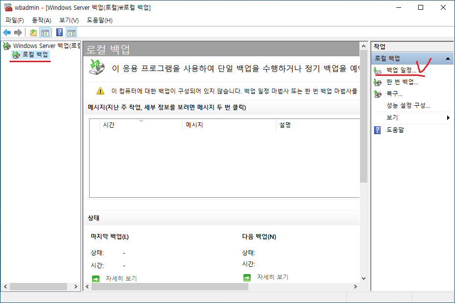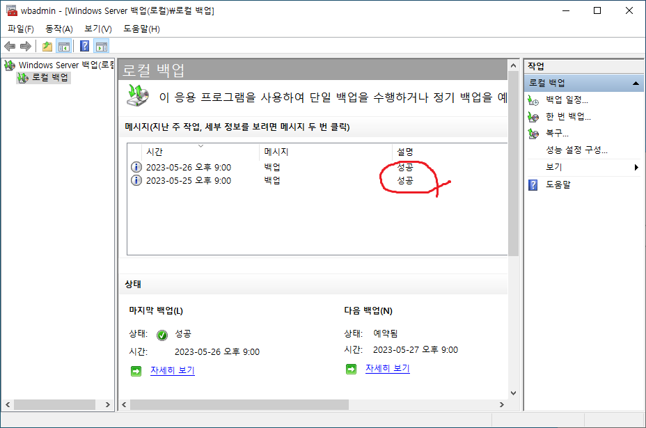 18. 가끔씩 wbadmin.msc를 실행하여서 백업이 잘 되고 있는지를 확인한다.