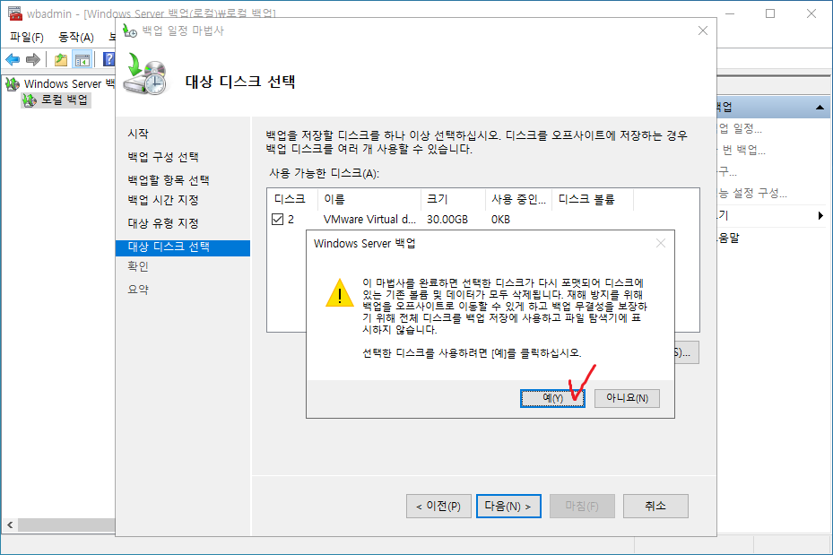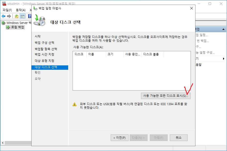 - 사용량 체크는 wbadmin.msc를 실행해서 확인한다.