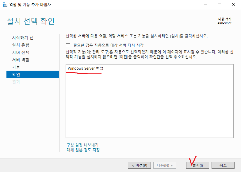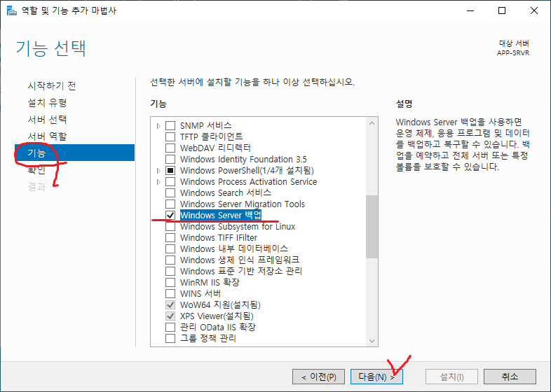 1. Windows Server 백업은 내장 기능이므로 이를 추가한다.
