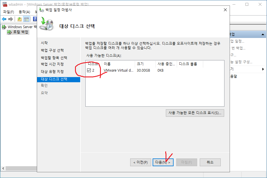11. 사용 가능한 백업 전용 디스크를 조회한다.