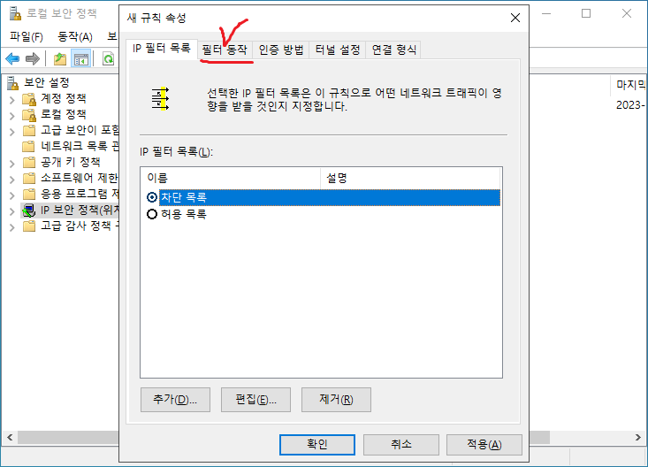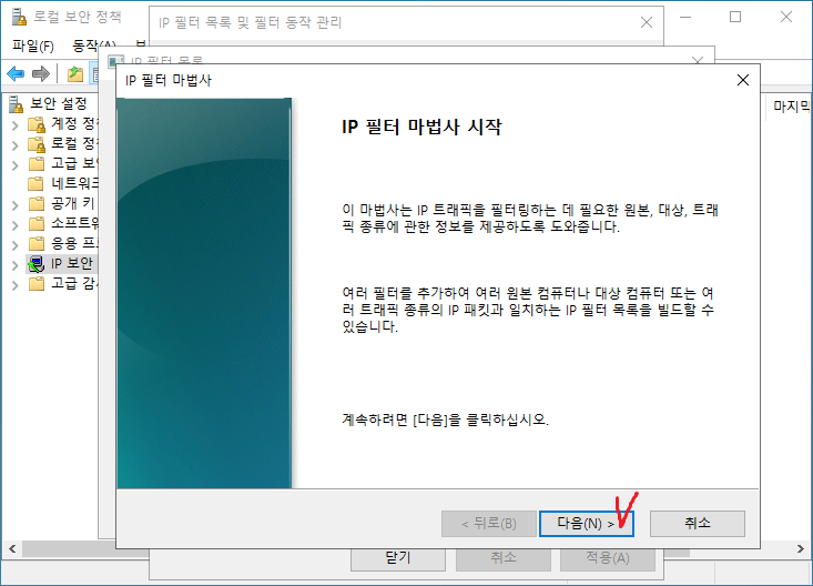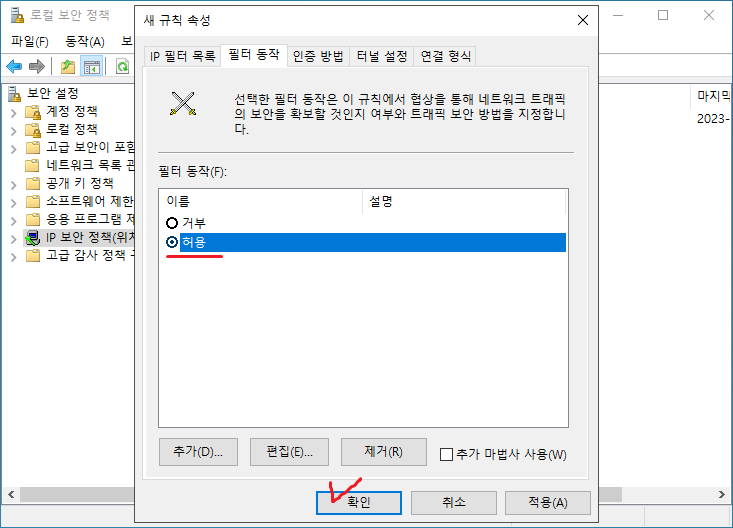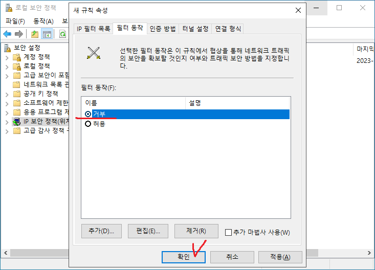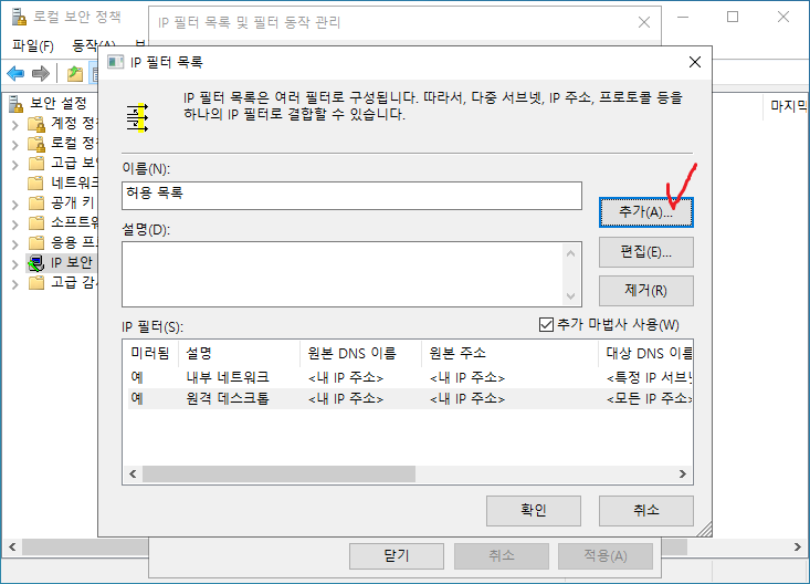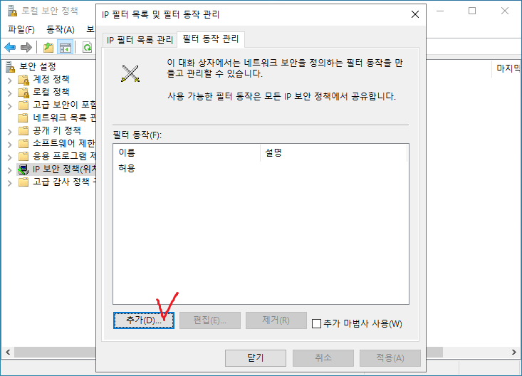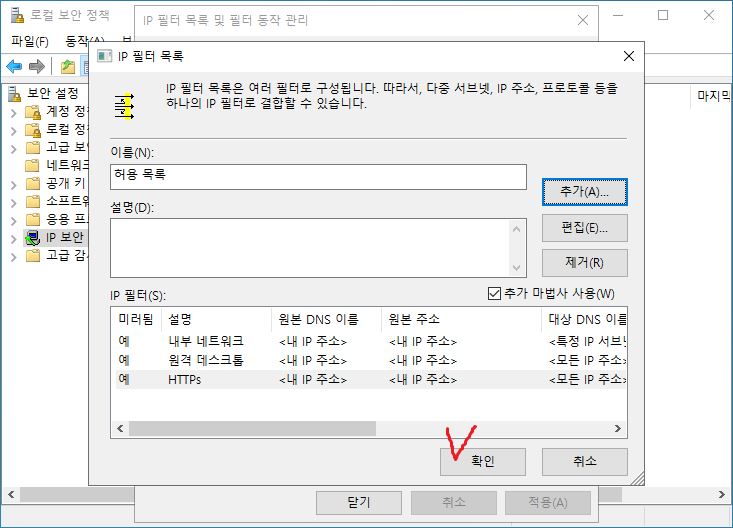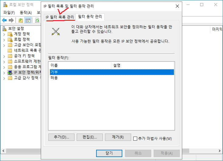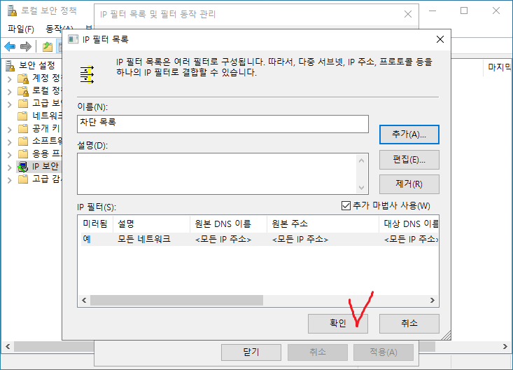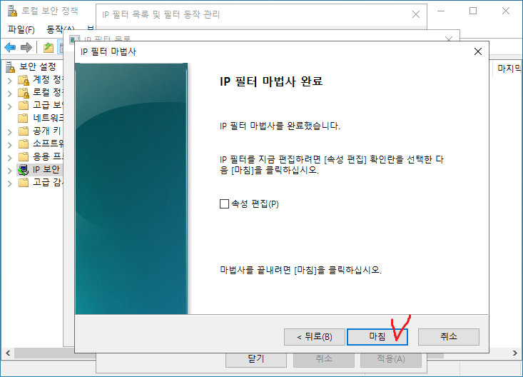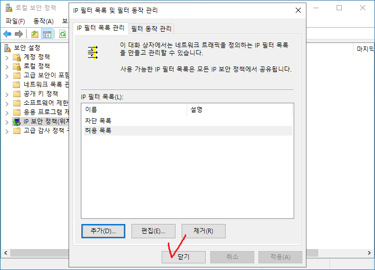 8. IP 필터 목록 및 필터 동작 관리를 종료한다.