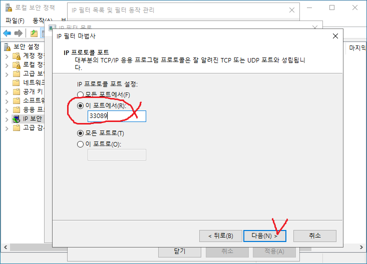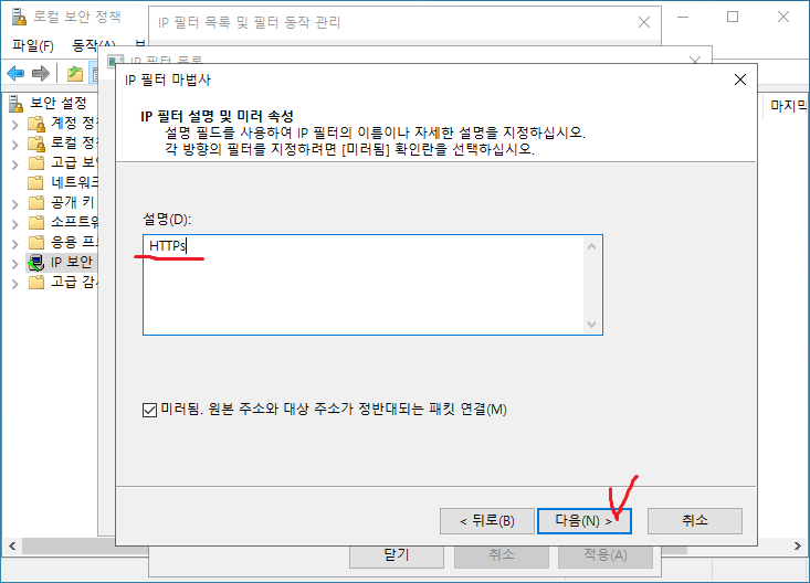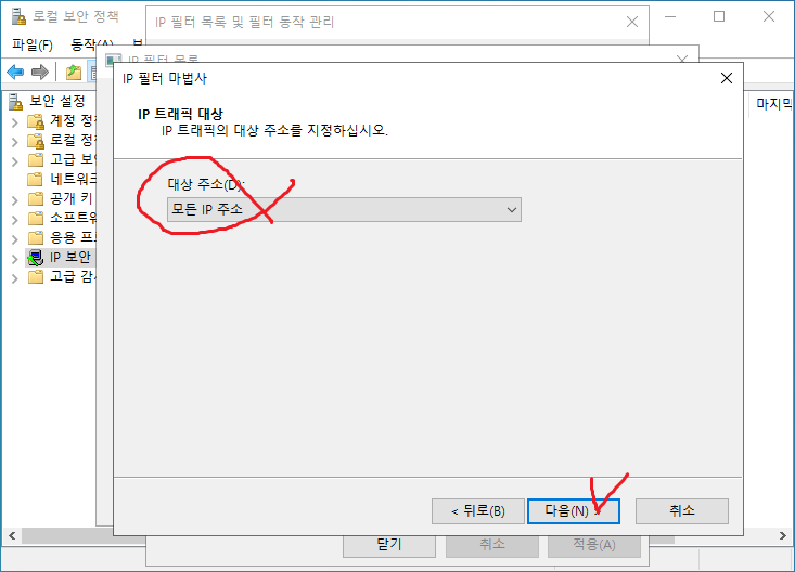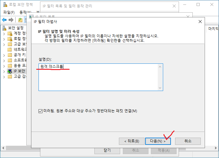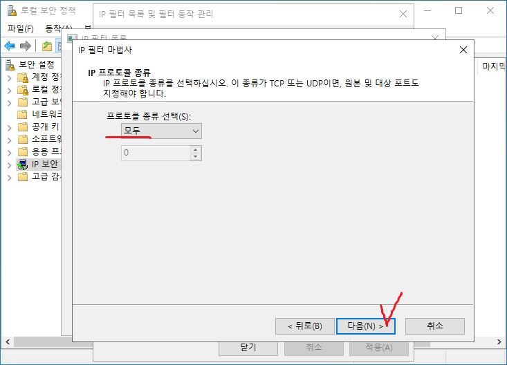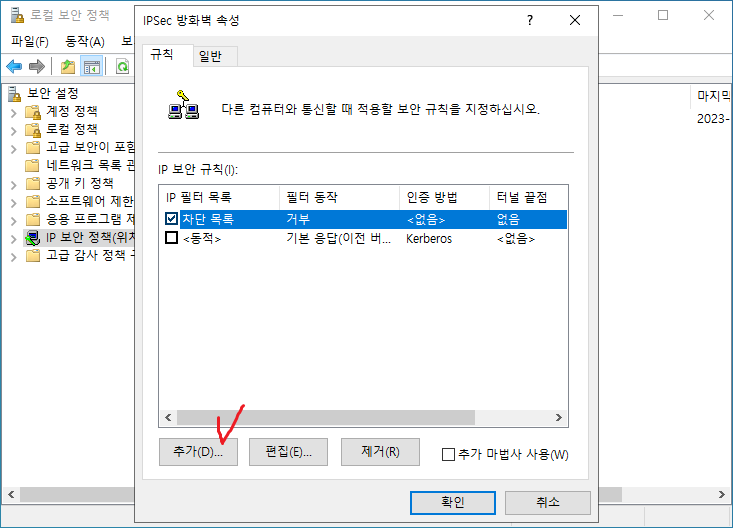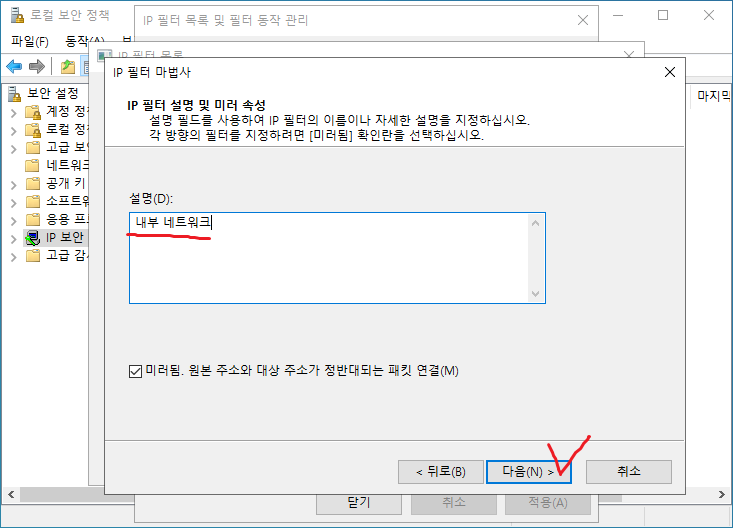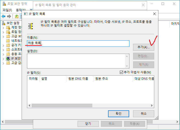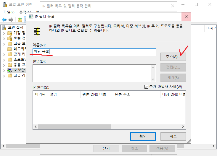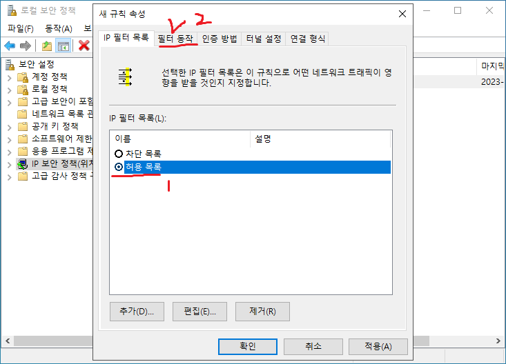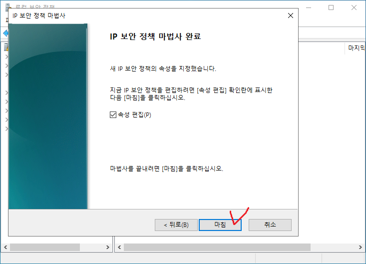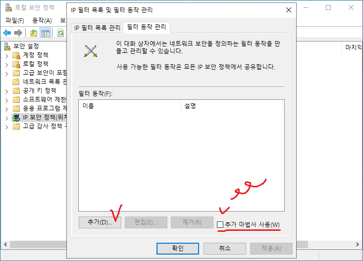 8. IP 필터 목록 및 필터 동작 관리를 종료한다.