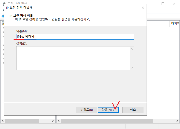 포지티브(인바운드, 아웃바운드 다 막고 서비스 포트만 허용)방식 방화벽을 IPSec으로 추가한다.
