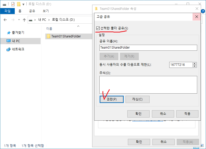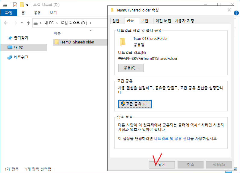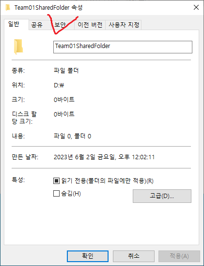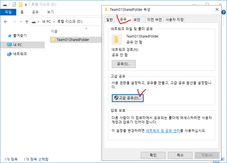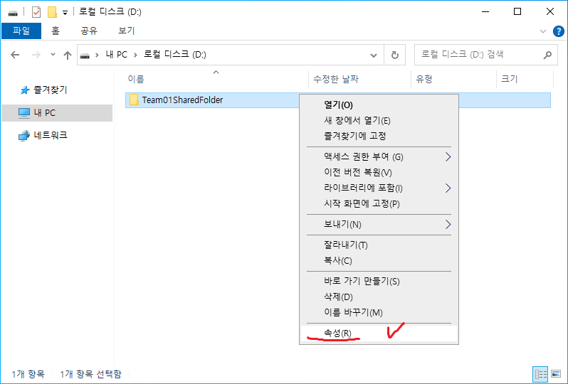 28. 해당 폴더의 속성으로 가서 공유 설정을 시작한다.