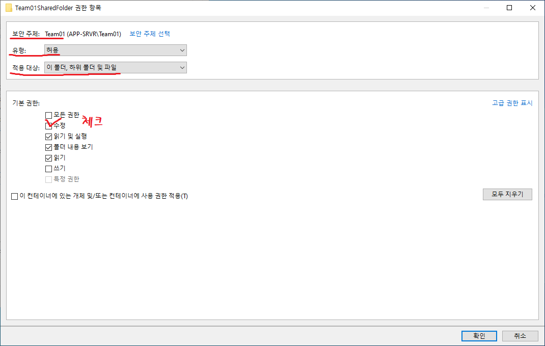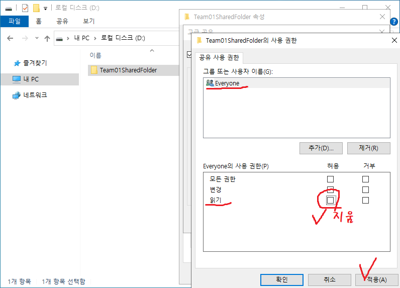 30. 기존 Everyone 그룹에 읽기 권한을 제거한다.