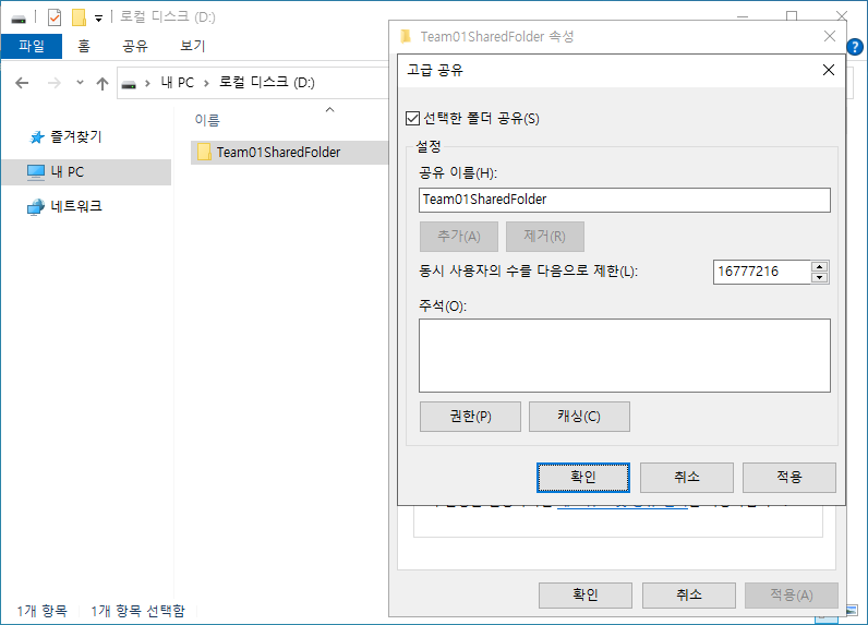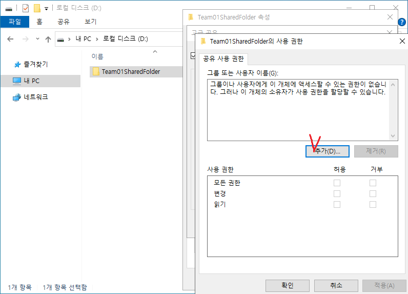 44. 사용자의 공유 그룹 추가를 마친다.