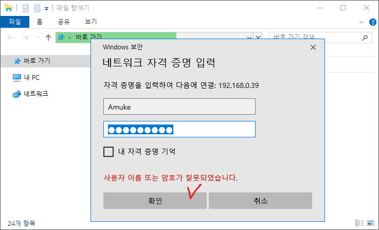 45. 사용자 컴퓨터에서 폴더의 바로가기 란에 \\서버주소를 입력하여 접속 테스트를 한다.