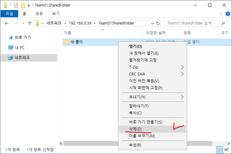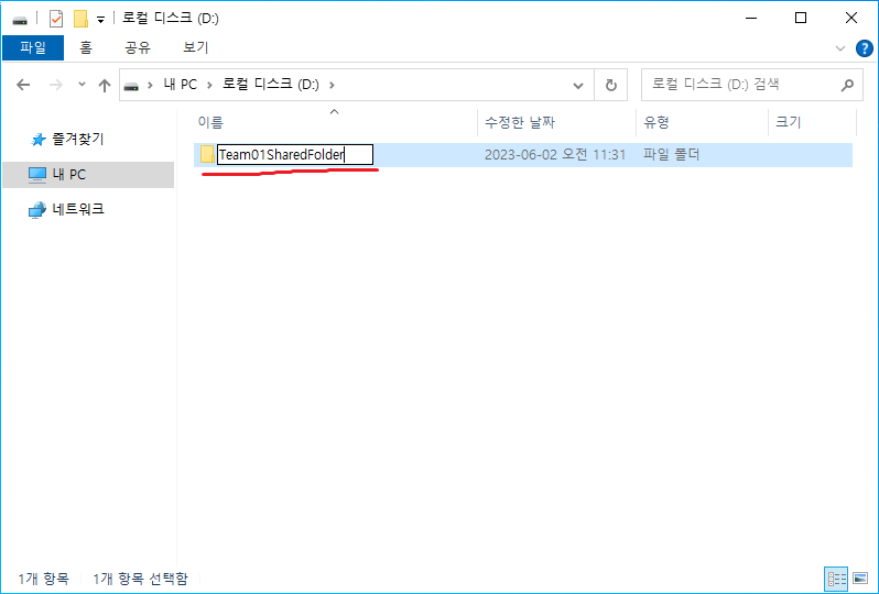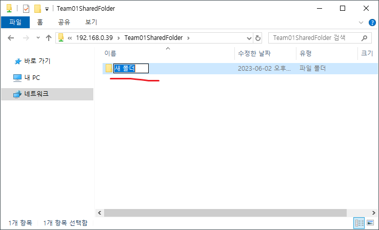 4. 네트워크 공유로 쓸 폴더를 만든다.