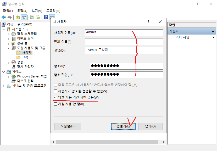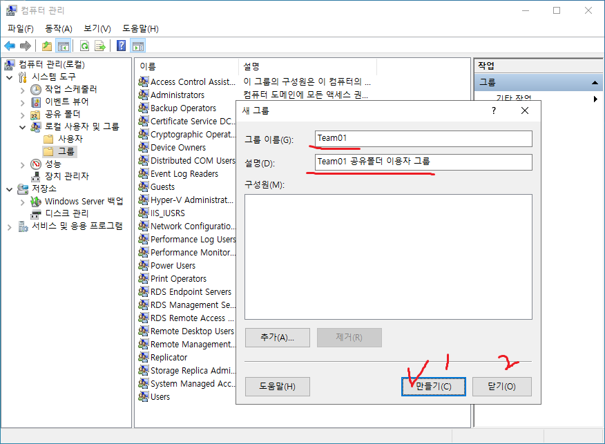 39. 공유 그룹에 소속될 사용자를 만든다. *네트워크 공유 폴더에 접속, 로그인하는 자