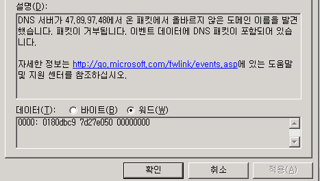 dns.exe의 메모리 사용량이 서서히 증가한다.