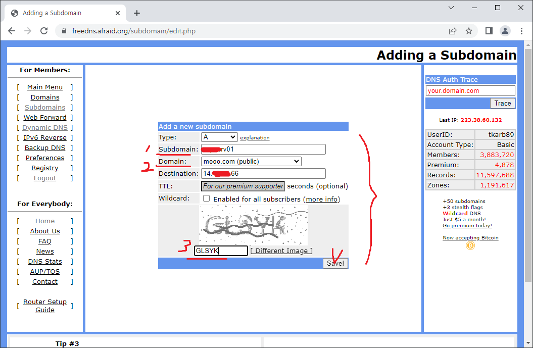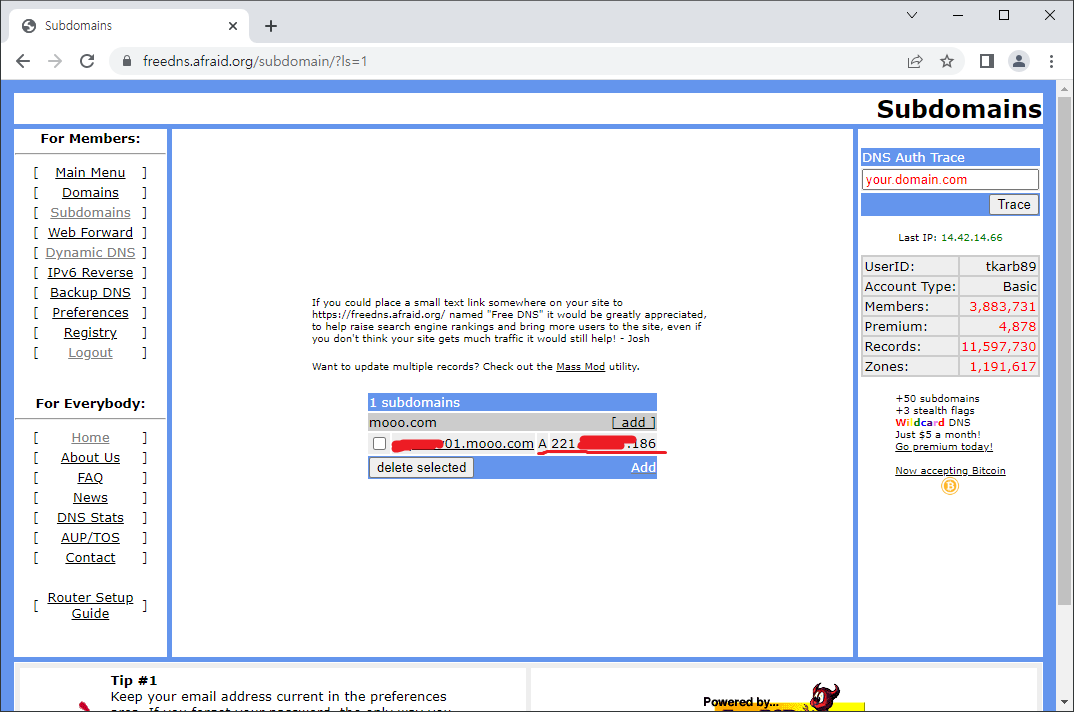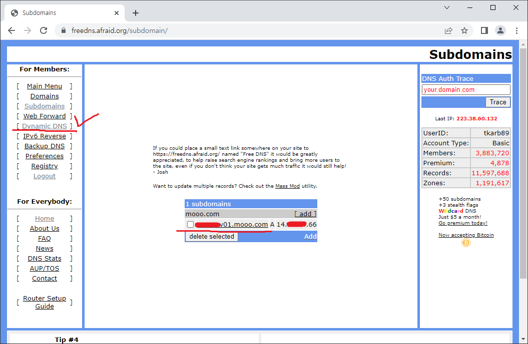 22. freedns.afraid.org에서 DDNS 주소로 업데이트된 IP를 확인한다.