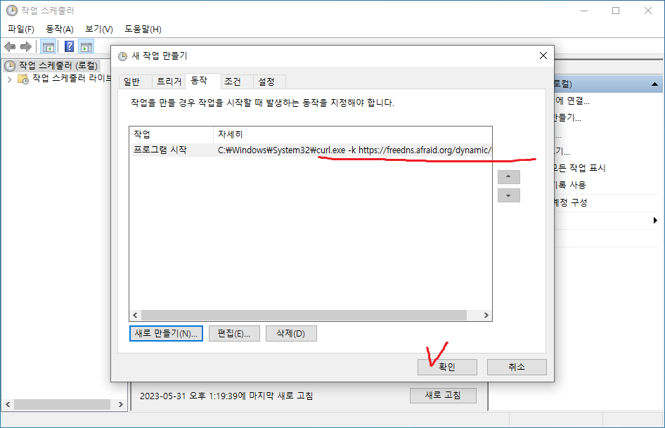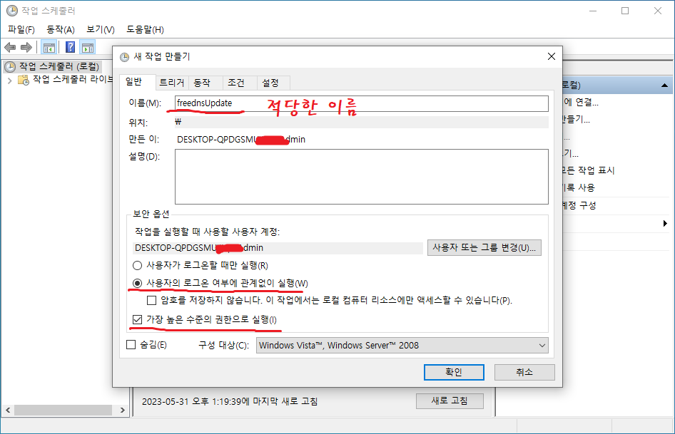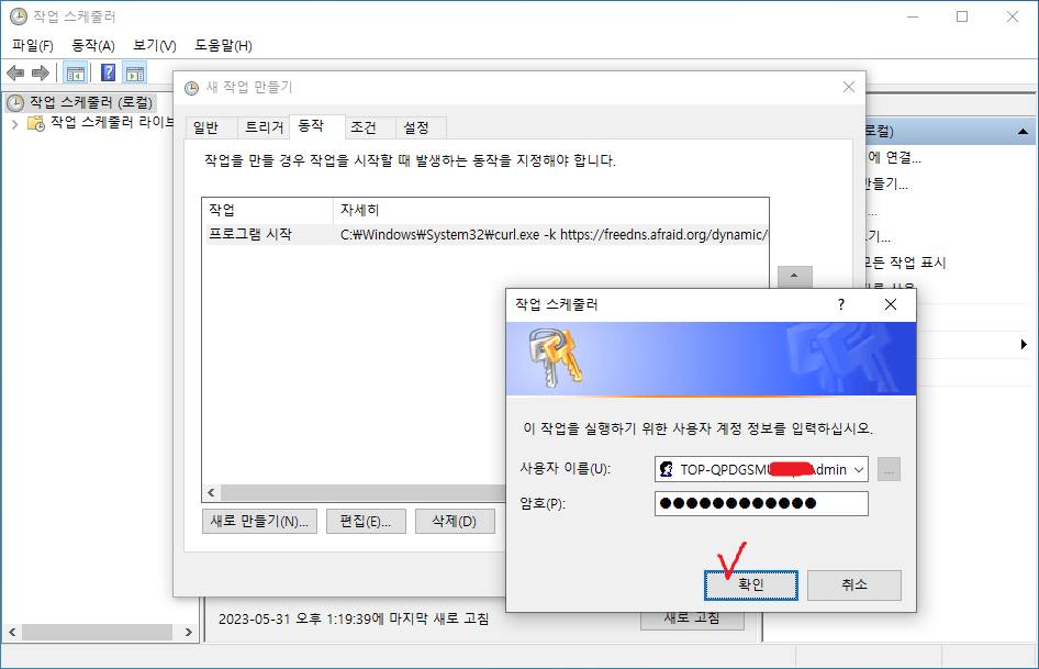 20. 관리자계정 암호 입력으로 작업 만들기가 끝난다.