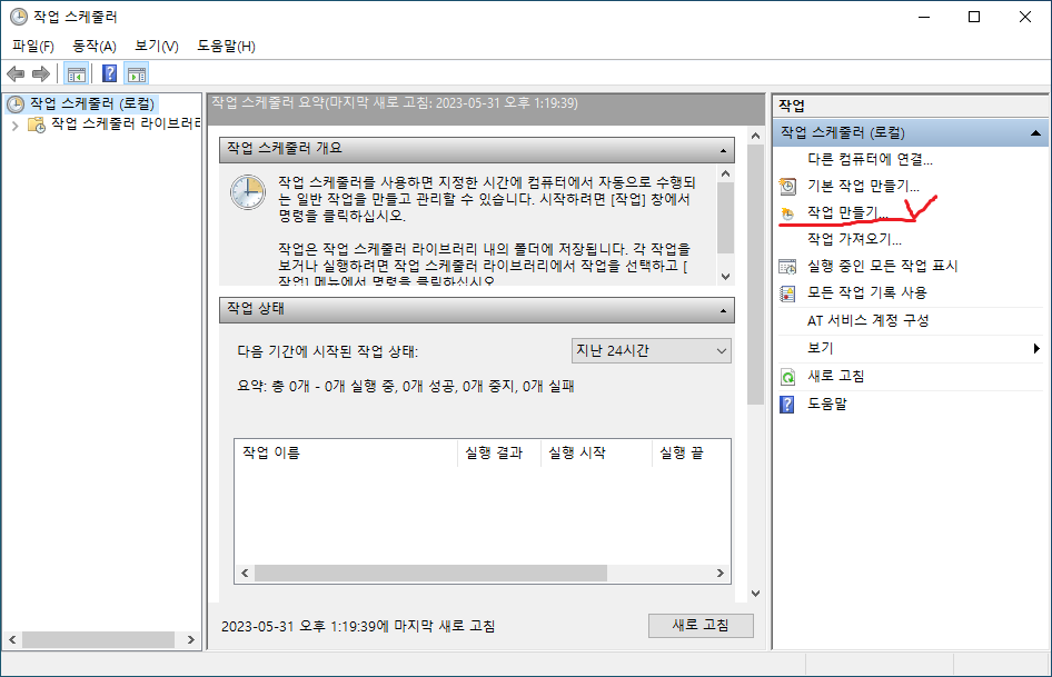 9. 윈도우에서 작업 스케줄러를 실행한다.