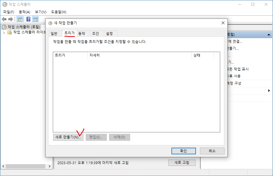 14. 트리거 생성과 작업을 확인한다.