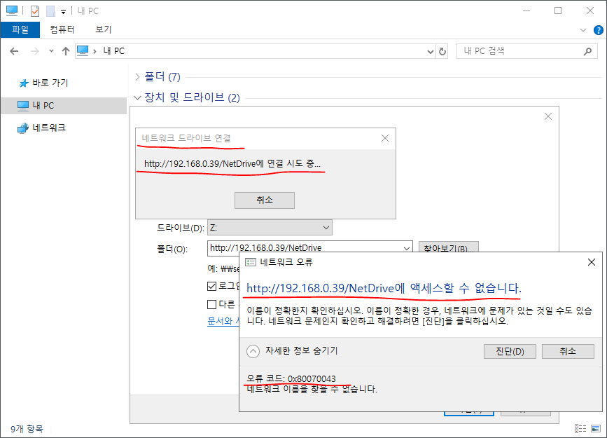 HTTP로 네트워크 드라이브 연결시 엑세스할 수 없습니다.