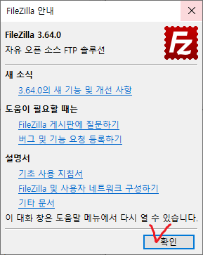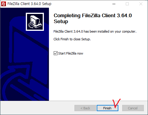 11. 설치를 마친다. *파일질라가 자동으로 시작된다.