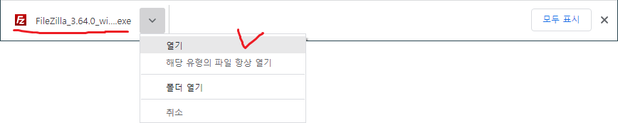 3. 다 받아지면 바로 실행(열기)한다.