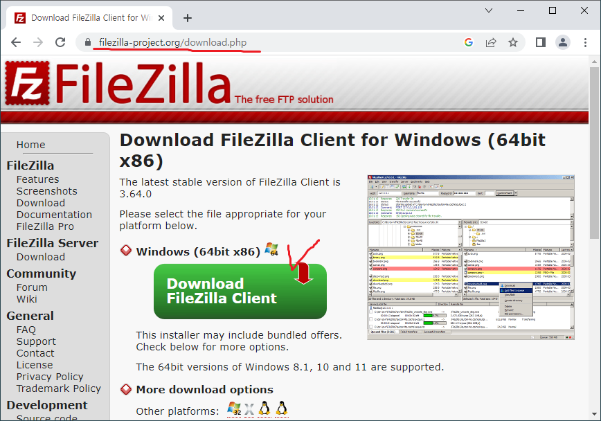 https://filezilla-project.org/download.php?platform=win64 64bit 버전