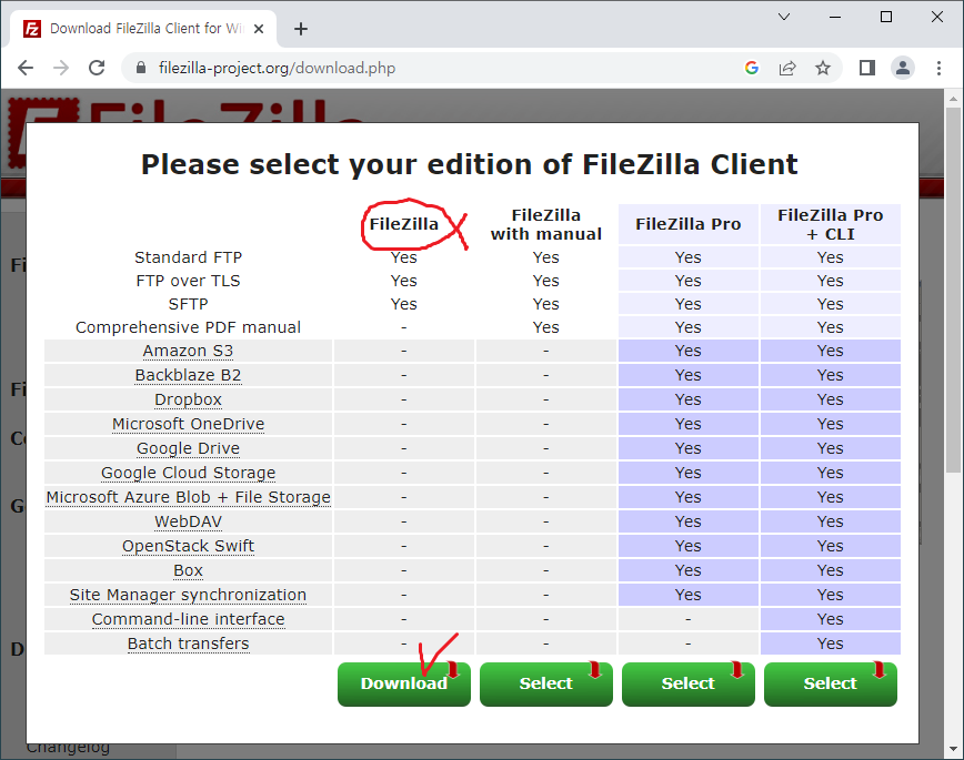 2. 무료인 FileZilla 에디션을 선택한다.