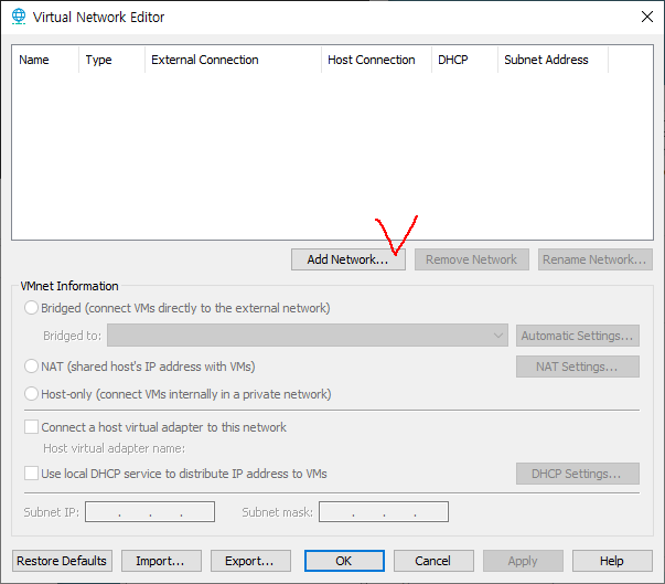 1. Virtual Network Editor를 실행한다.