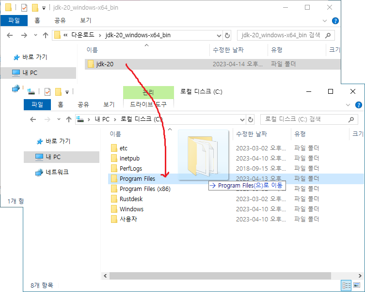 1. jdk 폴더를 C:\Program Files 안으로 이동