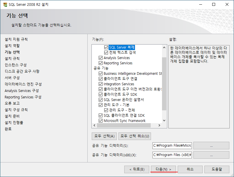 기능 설치는 필요한 것만 선택해서,