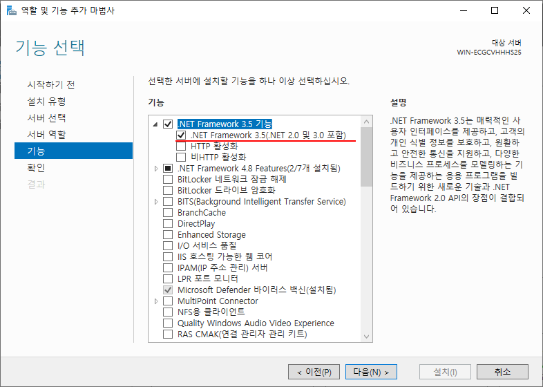 먼저 .NET Framework 3.5를 설치한다.