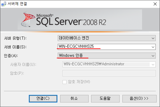 Windows 인증으로 들어가는지 확인한다.