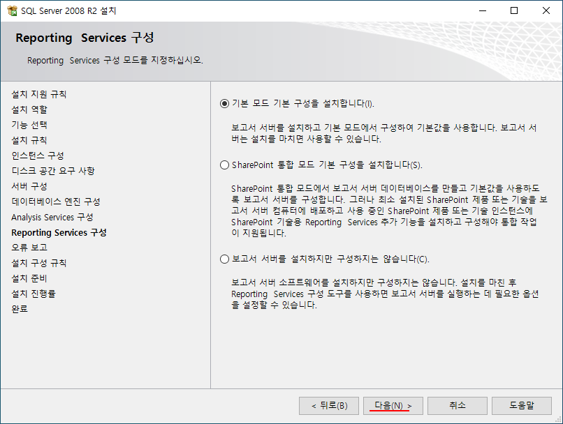 보고서 서비스는 일단 기본 구성으로 설치한다.