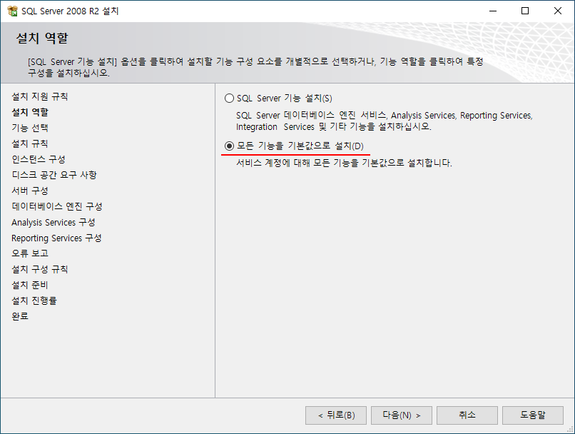 기본값 설치는 모든 기능을 자동으로 선택하게 한다.