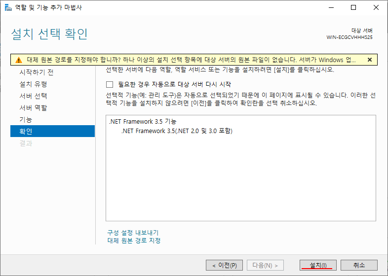 Windows Server 2012 R2 - .NET Framework 3.5 기능 추가 안되는 경우