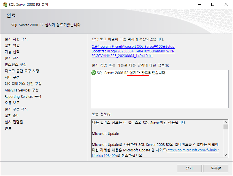 설치관련 로그파일의 어디 쯤에 있다는 것만 확인하고 설치를 마친다.