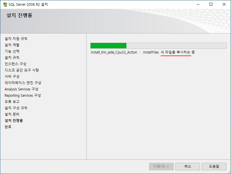 지원 파일들이 설치될 때까지 기다린다.