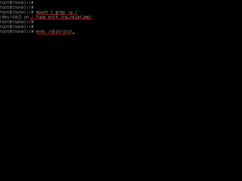 exec /sbin/init를 입력하여 부팅되도록 한다.