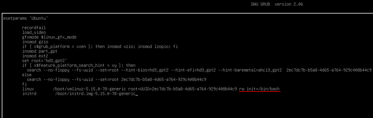 rw init=/bin/bash으로 바꾸고,