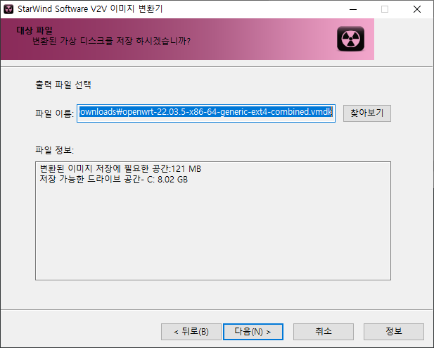 5. 이미지 크기와 변환된 파일이 저장될 공간이 충분한지 확인한다.