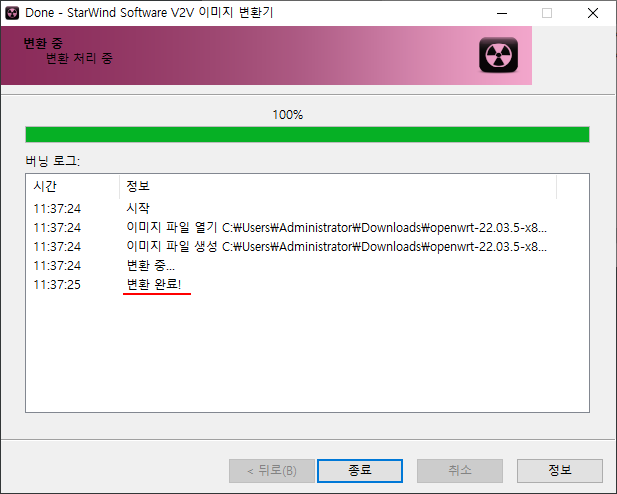 6. 완료가 나오면 변환프로그램을 종료한다.
