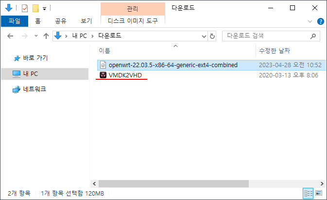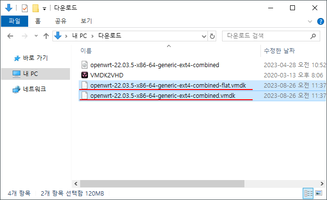 7. 2개의 VMDK 파일이 만들어 졌는지 확인한다.