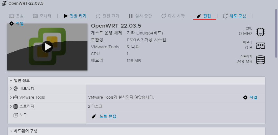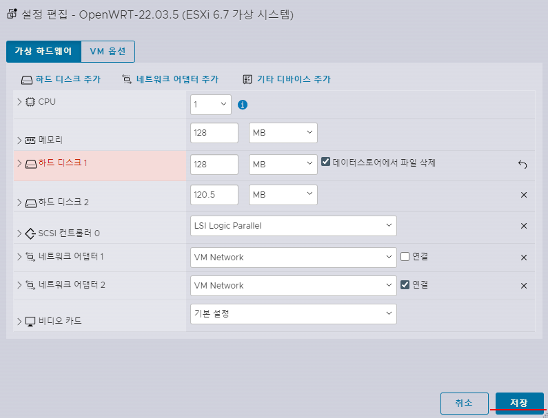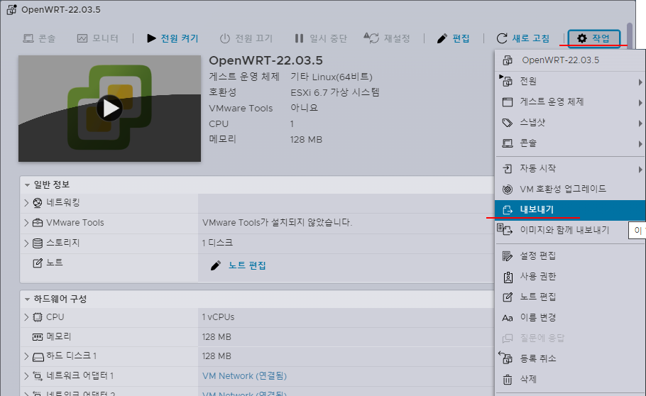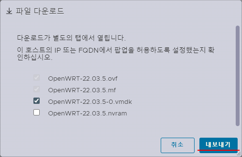 혹시, 이런 과정없이 OpenWRT 22.03.5 ESXi용 가상머신 파일만 필요하다면 다운로드 한다.